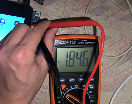 旁边的红光LED2正常点亮,量了一下电压,大概在1.8V左右,这个正好可以作为对比