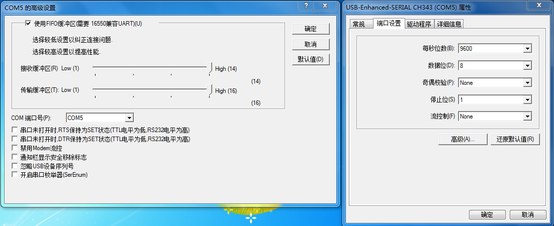 常见的串口配置界面如下(这是Windows自带的,仅作参考使用),串口的常见参数配置:端口号、波特率、数据位、奇偶校验位、停止位、硬件流控