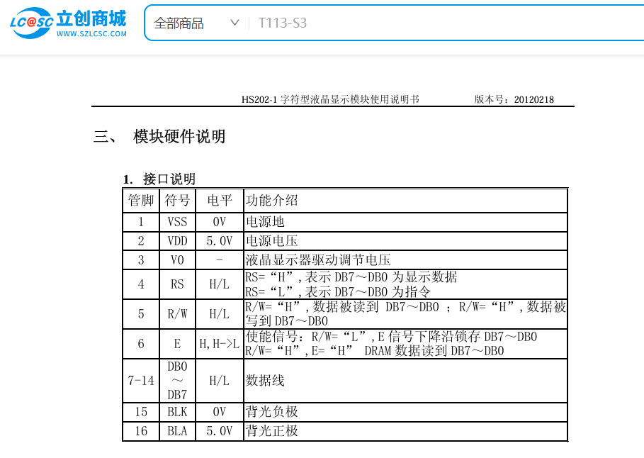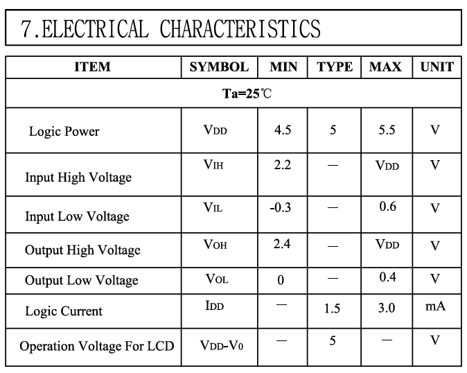 买的是5V供电的LCD2002,但它的数据引脚是可以兼容3.3V的GPIO的,详细可参考数据手册关于芯片引脚电气特性的说明
