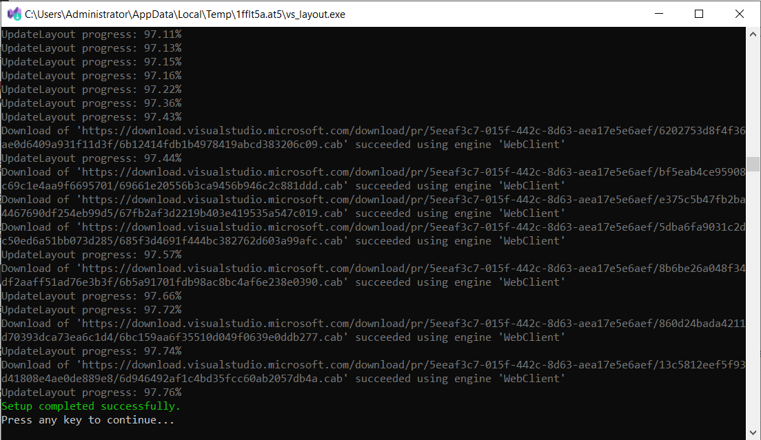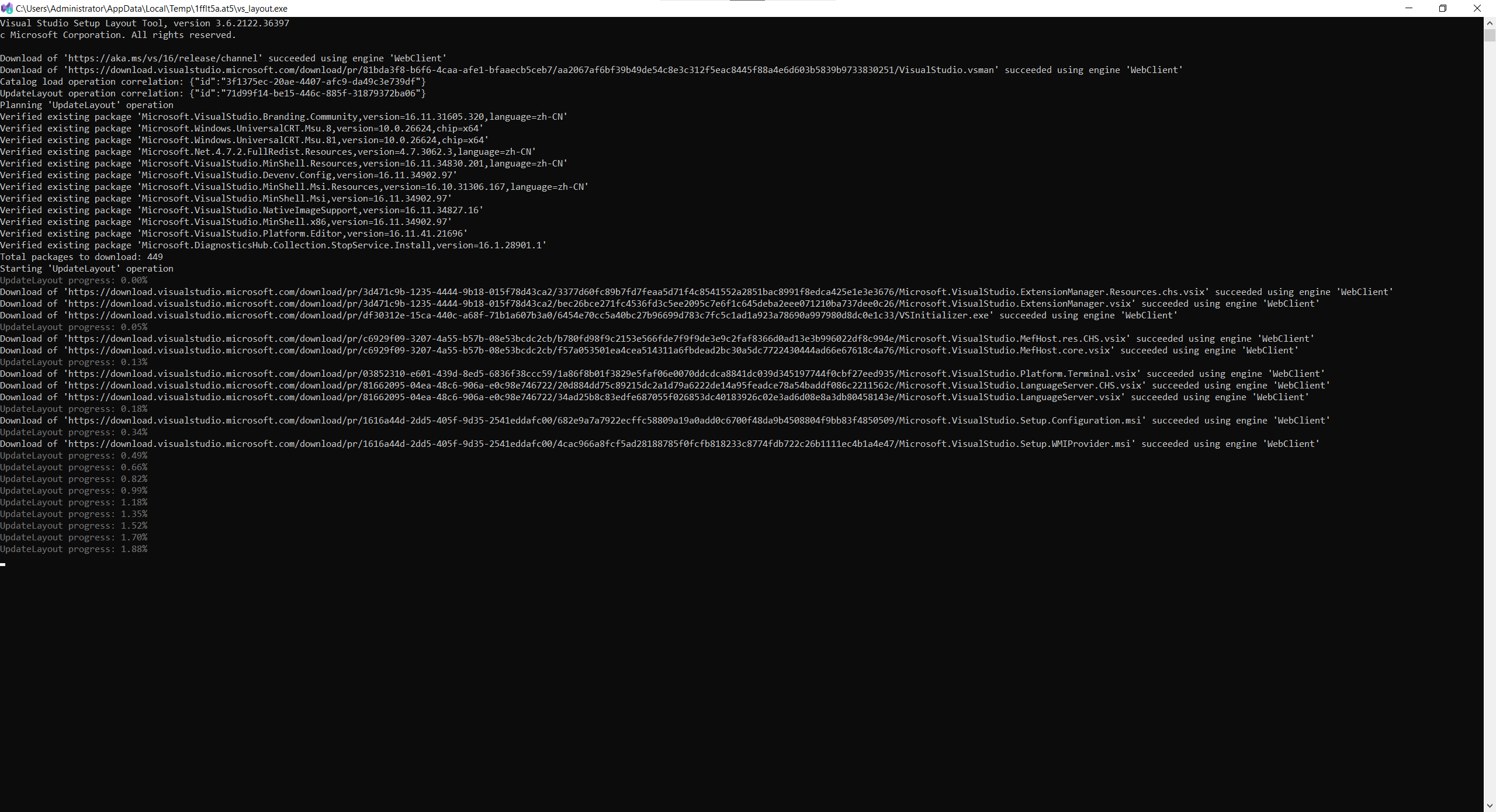 参数--lang用于指定Visual Studio的安装语言,我这里选中国汉语